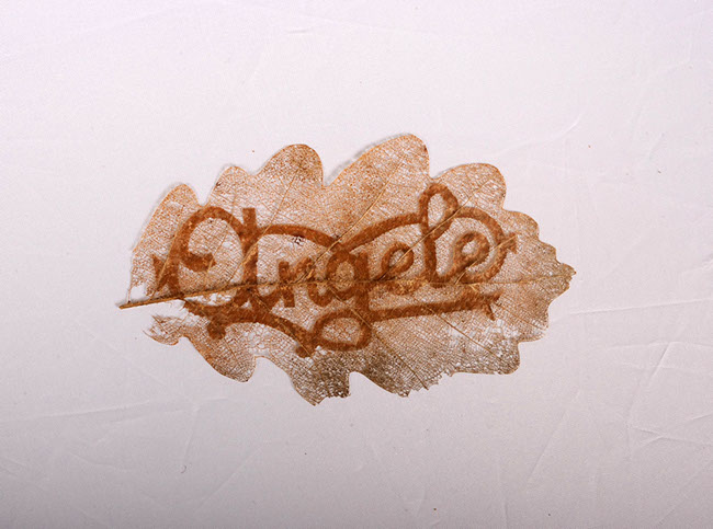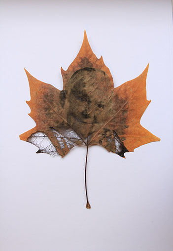 Gravure laser sur feuille d'arbre, 2017