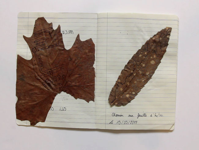 Dessins sur feuilles d'arbre, 2017