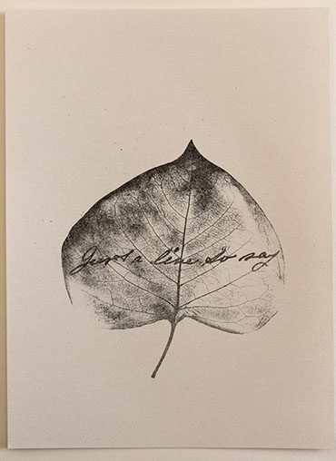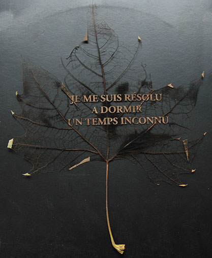 gravure laser sur feuille d'arbre, texte extrait de correspondances de Poilus, 2017
