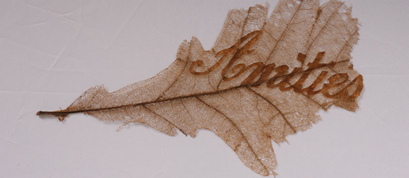 Le motif est inscrit en creux ou en plein, il est comme « camouflé » dans l’élément végétal, jeux d’ombres et de lumières, d'oubli et de souvenir.