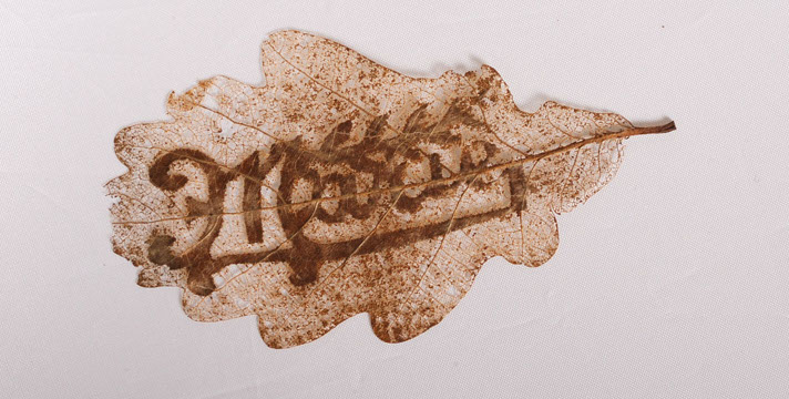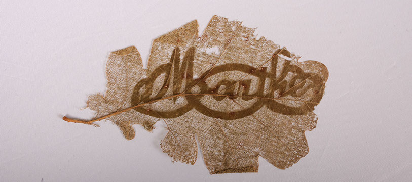 La découpe laser est une technique numérique extrêmement précise normalement utilisée pour le travail en série. Sa constance est mis à mal par l’irrégularité du support. Chaque feuille d'arbre, matière singulière et vivante provoque des résultats toujours différents. Accidents, brûlures et hasard participent aux portraits.